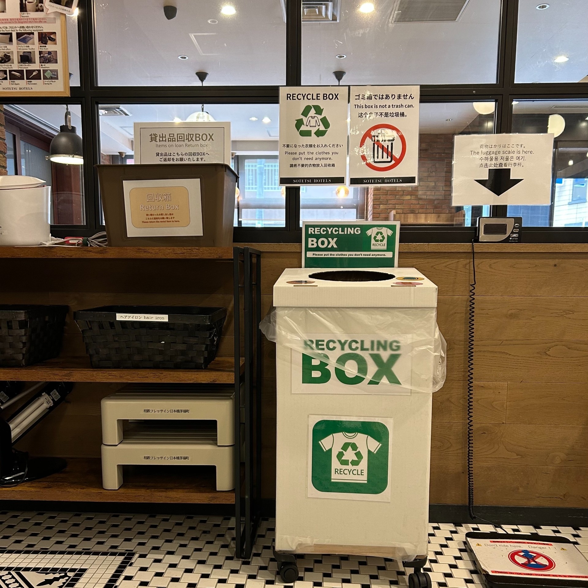 この度、私たちのホテルの新しい取り組みとして、衣類のリサイクルボックスを設置しました!👕👖