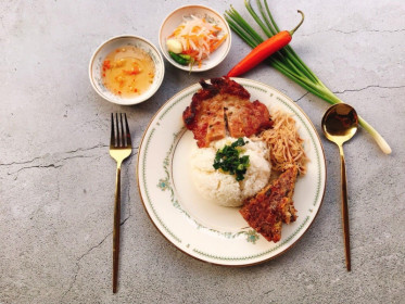 「コムタム」とは砕いたお米を少し硬めに炊いて、グリルした豚肉や目玉焼きなどをのせて食べる、南部を中心に愛されているベトナム料理です。