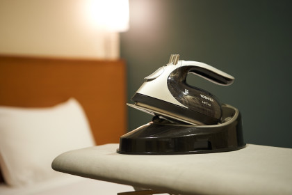 客室には備え付けのドライヤーがあり、貸し出し備品としてカールドライヤー、ヘアアイロンをご用意しています。雨で濡れてしまった髪を乾かすのはもちろん、翌日のヘアスタリングにもお使いいただけます。