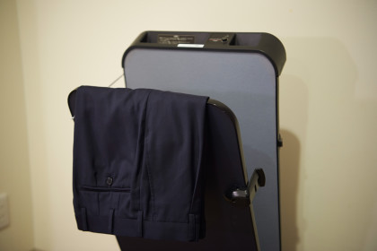 悪天候の中、スーツで一日動きまわったらシワがついてしまったという時でも、挟んでおくだけで簡単にシワを取り、綺麗な折り目をつけてくれる便利なアイテムです。