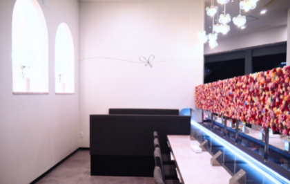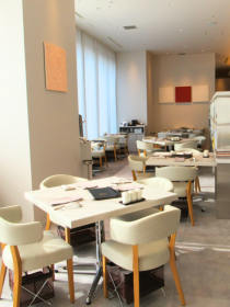 白で統一された明るい店内。アート作品や洋書が飾られた高感度なインテリアで、円卓の個室もあり。