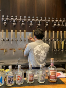 こちらは、クラフトビール製造会社・横浜ベイブルーイングの直営ビアホール。ご覧ください、このタップ(注ぎ口)の数!10種類以上の自社ビールと、静岡・山梨の醸造所の銘柄など10種類以上のゲストビール、計24種の樽生ビールが楽しめます。