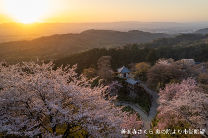 桜が境内全域で見頃を迎えるのは4月中旬で、特に白山さくら苑では、しだれ桜やソメイヨシノなど50本近い桜が咲き誇り、奥の院から見下ろす満開の桜と京都市街の美しい眺望は、訪れる人を魅了します。