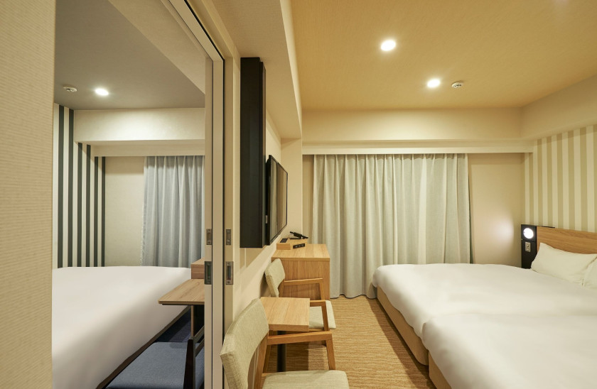 お部屋はゆったりと過ごせる「コネクティングルーム」がおすすめです。隣同士の部屋の間に室内ドアがついていて、自由に行き来できます。子どもは「こっちのお部屋も行ってみよう!」と楽しそうに行ったり来たり。まるで秘密の通路を見つけたようで、ちょっとした探検気分にテンションも上がります。