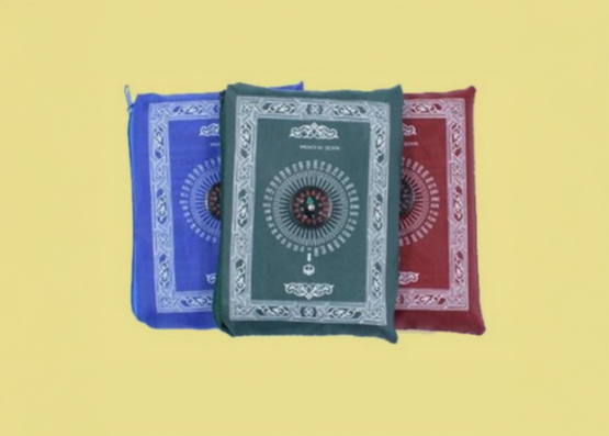 The portable prayer mat is equipped with a compass for your convenience.