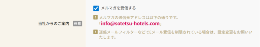 | STEP2 | 初回登録時、または会員マイページの「お客様情報の変更」ボタンより、「☑メルマガを受信する」にチェックを入れて更新 |