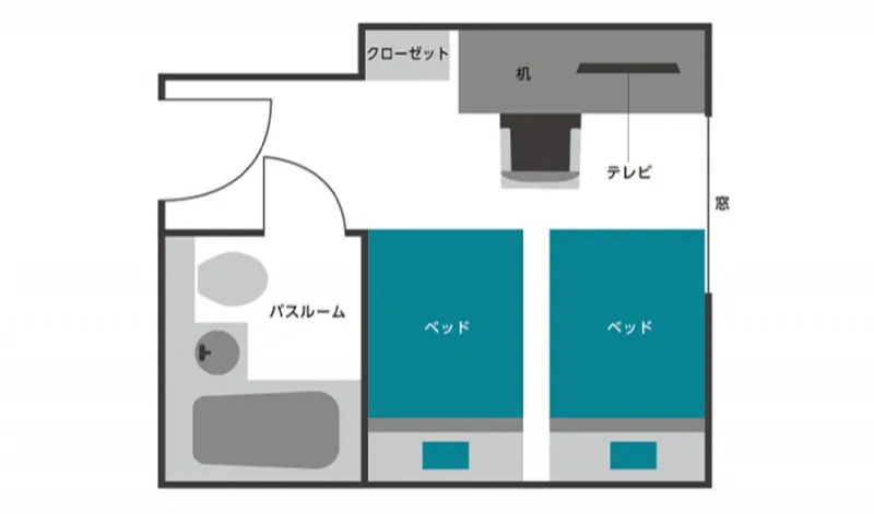機能的でスタイリッシュな客室です。2名様のご利用でも快適にご利用いただけます。