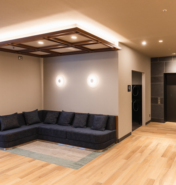 落ち着いた雰囲気のロビーをはじめ、セルフチェックイン・チェックアウト端末、セルフクローク、自動販売機やコインランドリー、電子レンジなど、充実した設備をご用意しています。