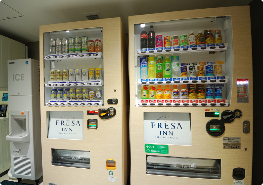 ソフトドリンク、アルコールの自動販売機をご用意しております。客室でのお休み前の一杯に、ぜひご利用ください。