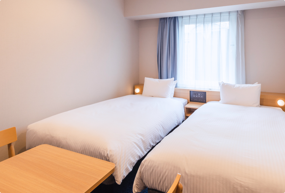 全米トップクラスの実績を誇るサータ社製ベッドを導入のほか、加湿機能付き空気清浄機完備、"良水工房"の浄水システム設置により、優しいお水を提供しています。コンパクトなダブルルームをはじめ、コネクティングルームなど多様な客室をご用意しています。
