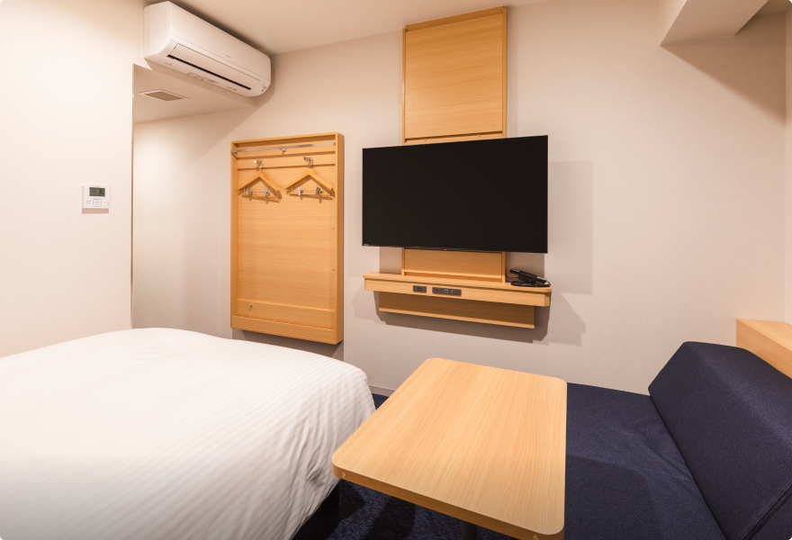 スタンダードダブルより広めの客室です。2名様でのご利用はもちろん、広いベッドでゆっくりお休みになりたいビジネス利用のお客様にもおすすめです。
