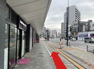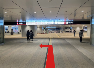 新幹線の改札から出た場合、右(南口)へ進みます。