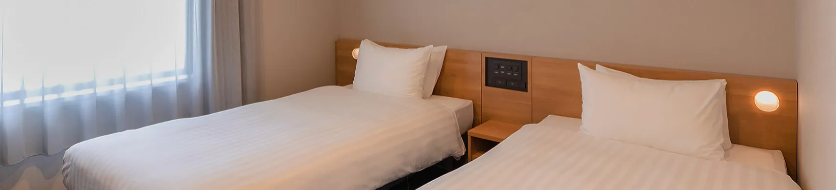 スタンダードツインより客室面積が広く、スタッキングベッドご利用で最大3名様までご宿泊いただけます。バスルームとトイレが独立しており、ファミリー、お友達同士でのご利用に便利です。ベッド下のスペースは荷物の収納としてご利用いただけます。