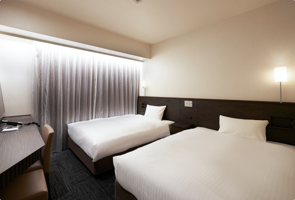 全米トップクラスの実績を誇るサータ社製ベッドを導入のほか、加湿機能付き空気清浄機を完備しています。コンパクトなシングルルームをはじめ、コネクティングルームなど多様な客室をご用意しています。