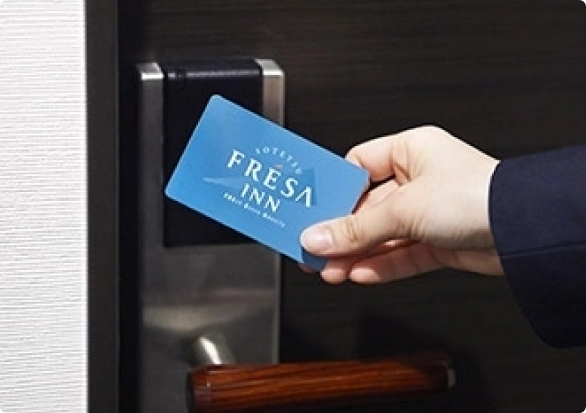 全室に非接触ICカードキーを導入しております。また、ホテルへの入館(深夜1時~5時)やエレベーターの作動にはカードキーが必要です。
