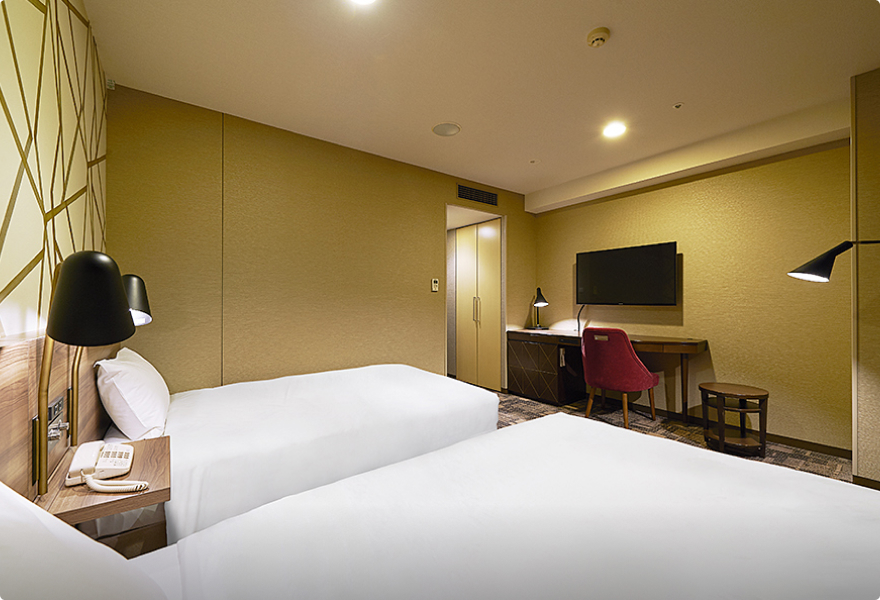 ツインルームより客室面積が広いタイプのお部屋で、ご夫婦やファミリー、お友達同士とのご利用に快適にお過ごしいただけます。当ホテルで最も広い客室です。