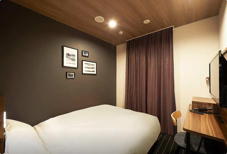デスク部分を省スペース化して居住スペースを広く取った客室です。カップルや広いベッドでゆっくりお休みになりたいビジネス利用のお客様に最適です。
