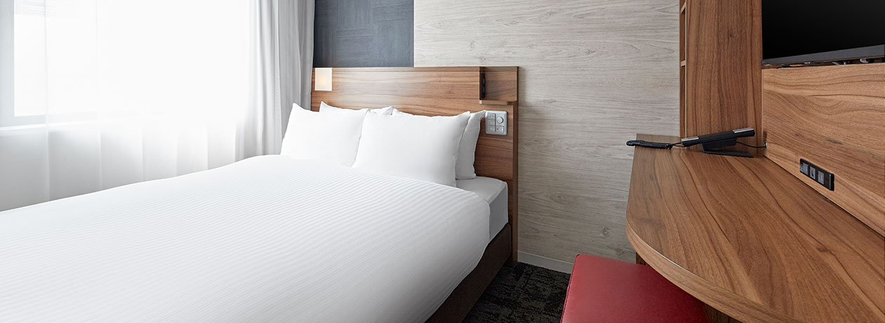 全米シェアNo.1シーリー社製ベッドを導入のほか、加湿機能付き空気清浄機完備、"良水工房"の浄水システムを設置しています。コンパクトなダブルルームをはじめ、コネクティングルームなど多様な客室をご用意しています。