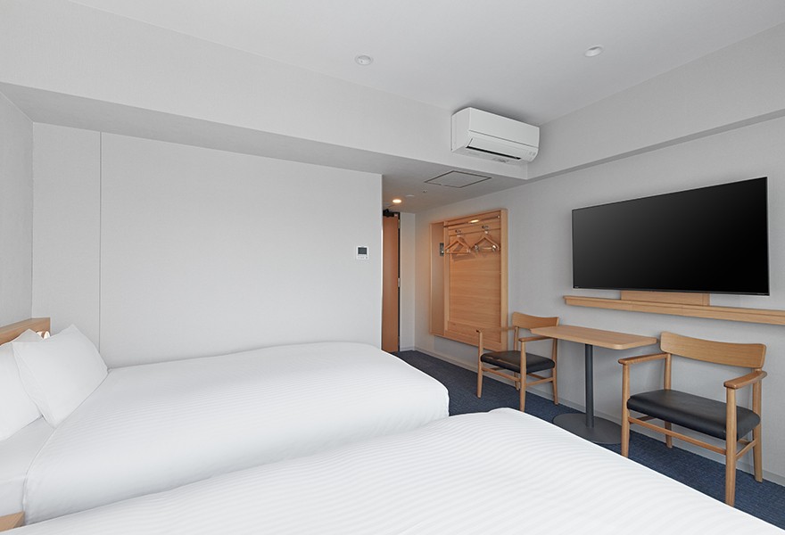 ツインより広めの客室で、ファミリー、お友達同士でのご利用に便利です。ベッド下のスペースは荷物の収納としてご利用いただけます。