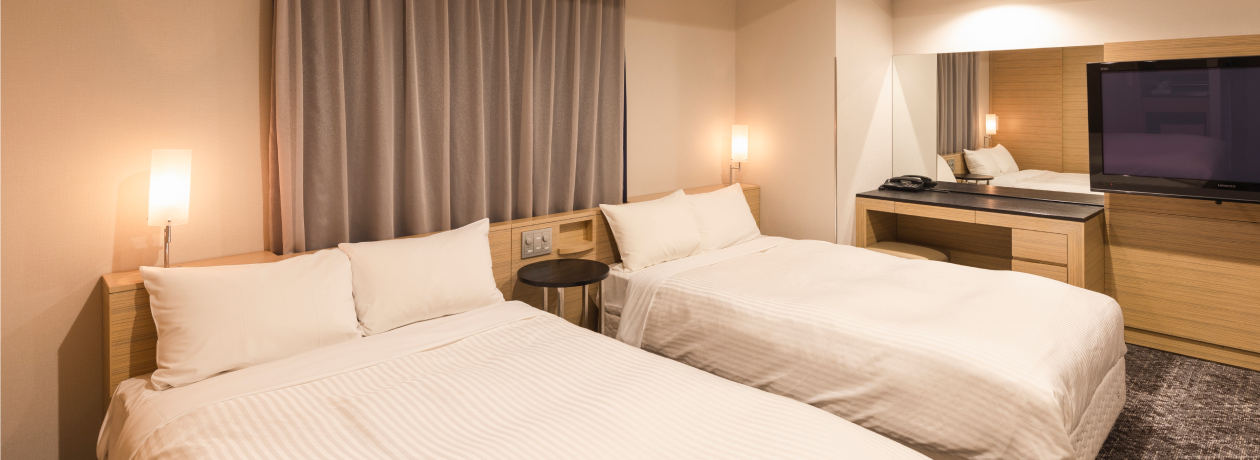 全米シェアNo.1シーリー社製ベッドを導入のほか、加湿機能付き空気清浄機完備、"良水工房"の浄水システムを設置しています。コンパクトなシングルルームをはじめ、コネクティングルームなど多様な客室をご用意しています。