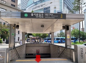 地下鉄2号線乙支路入口駅を出て、矢印に従って5番出口に向かいます。