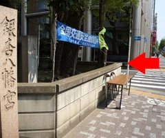 左側の「銀杏八幡宮」を左折しますと、すぐ右側に「魚や」の看板が見えます。