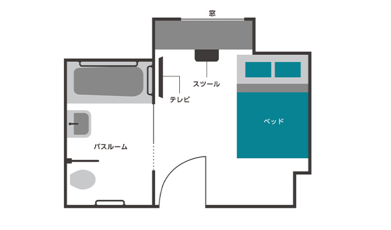 ダブルルームより客室面積が広く、角部屋の客室です。2名様としてのご利用はもちろん、広いベッドでゆっくりお休みになりたいビジネス利用のお客様にもお勧めです。