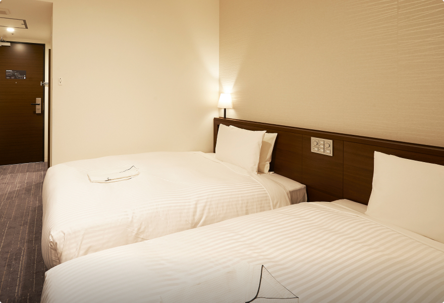 ご夫婦やファミリー、お友達同士とのご利用に快適にお過ごしいただけます。2台のベッドを隙間なく設置したハリウッドツインタイプの客室です。