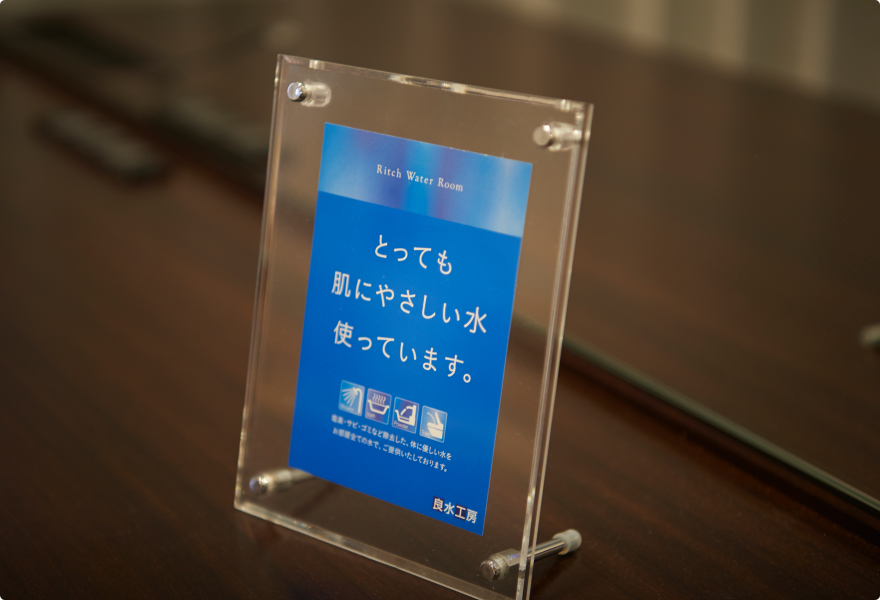 ホテル内すべての水が浄水です。シャワーや入浴、歯磨き、洗顔などで触れてやさしい「SOU美SUI(そうびすい)」を体験してください。