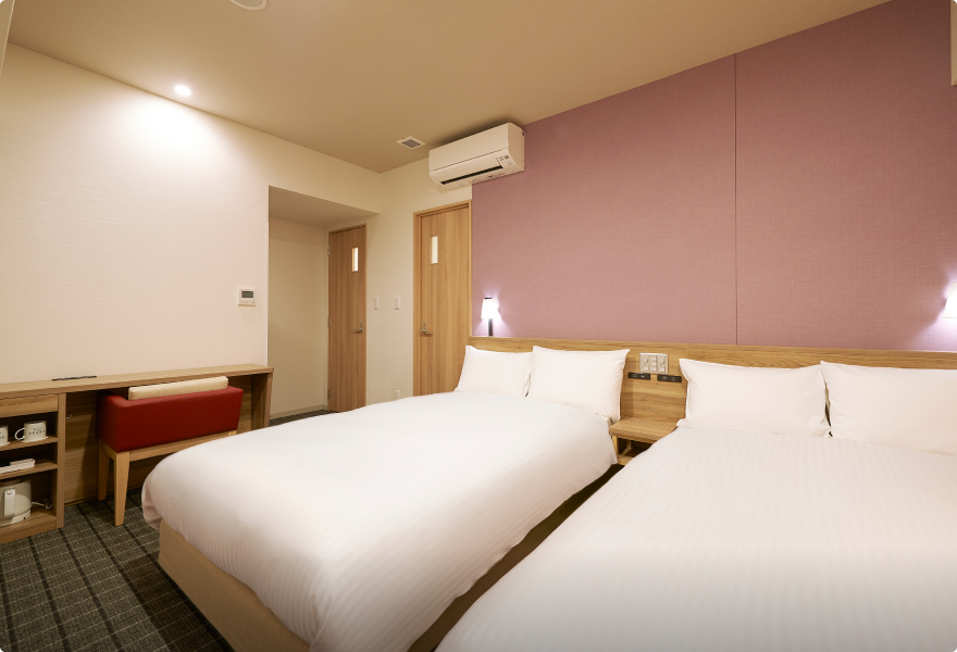 ツインルームより客室面積が広いタイプのお部屋で、ご夫婦やファミリー、お友達同士とのご利用に快適にお過ごしいただけます。バス・トイレが独立型の客室です。
