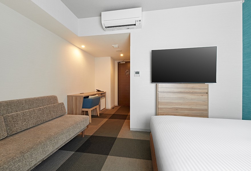 ダブルよりも客室面積が広く、ソファがあるタイプの客室です。2名様でのご利用はもちろん、広いベッドでゆっくりお休みになりたいビジネス利用のゲストにも最適です。ソファはベッドとしてご利用いただけますので、大人3名様でのご利用も可能です。ソファベッドをご利用して2~3名様でご利用になる場合、客室名称は「ブティックツイン」となります。