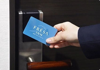 全室に非接触ICカードキーを導入しております。また、ホテルへの入館(深夜1時~5時)やエレベーターの作動にはカードキーが必要です。