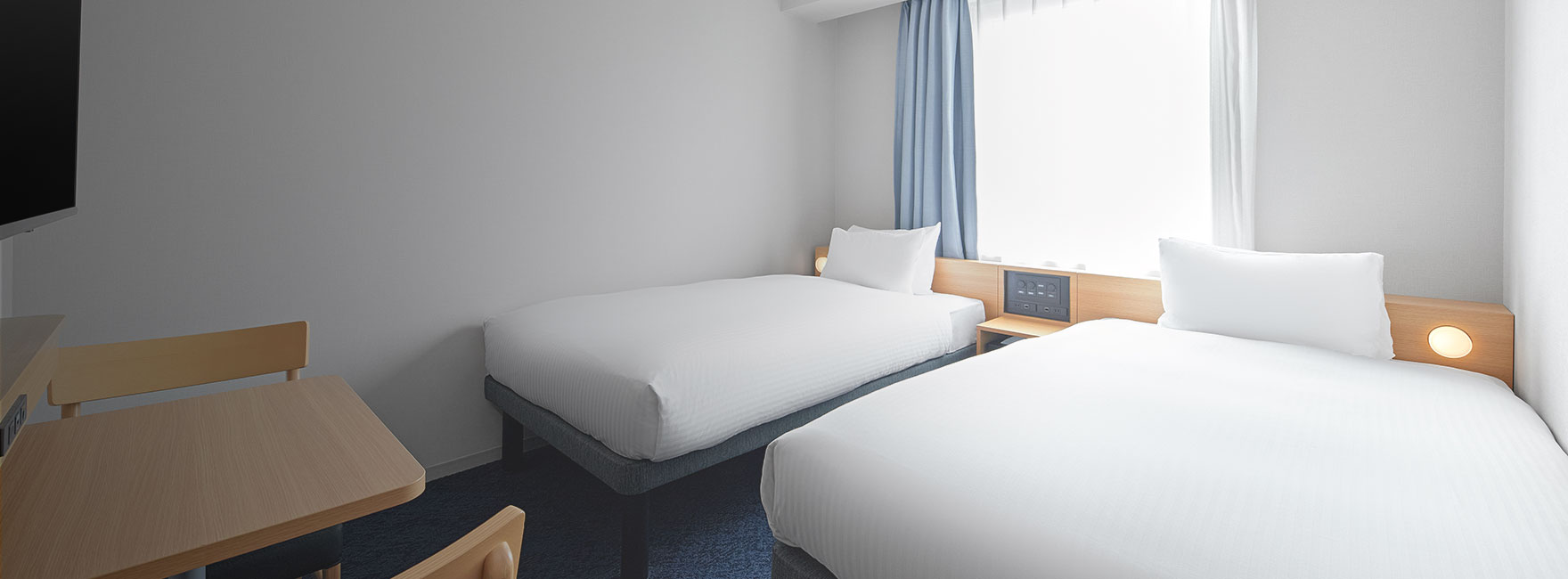 全米トップクラスの実績を誇るサータ社製ベッドを導入のほか、加湿機能付き空気清浄機完備、"良水工房"の浄水システム設置により、優しいお水を提供しています。コンパクトなダブルルームをはじめ、コネクティングルームなど多様な客室をご用意しています。