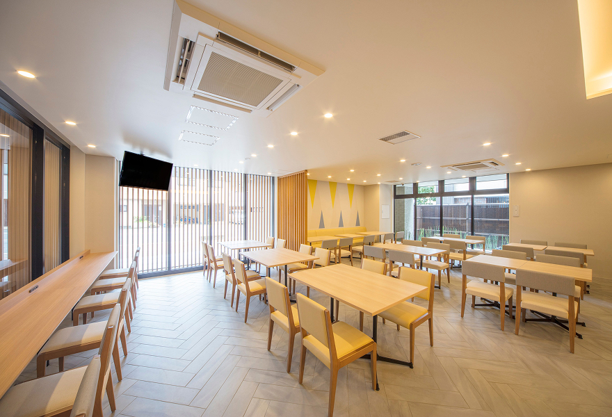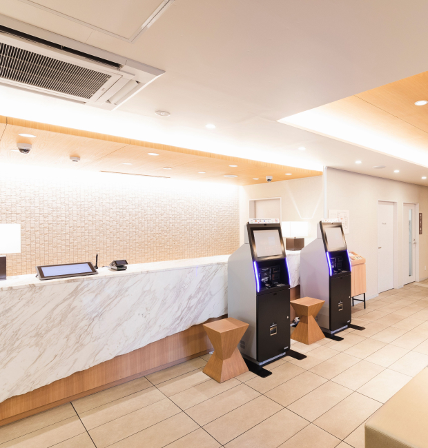 落ち着いた雰囲気のロビーをはじめ、セルフチェックイン・チェックアウト端末、自動販売機やコインランドリー、電子レンジなど、充実した設備をご用意しています。