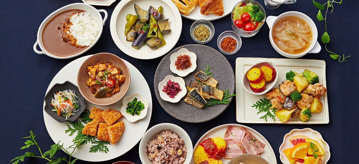ホテル1階朝食会場にて、フレッサインの日替わりビュッフェ(和・洋食)を1,400円にてお召し上がりいただけます。