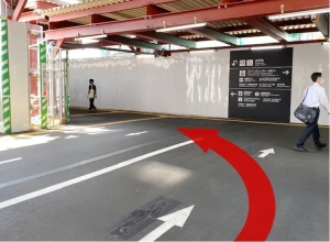 新幹線の改札から出た場合、右(南口)へ進みます。