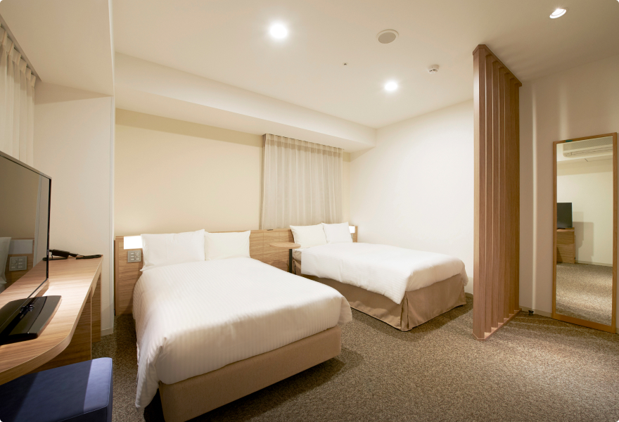 ツインルームより客室面積が広いタイプのお部屋で、ご夫婦やファミリー、お友達同士とのご利用に快適にお過ごしいただけます。