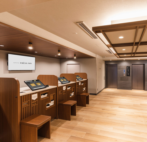 落ち着いた雰囲気のロビーをはじめ、セルフチェックイン・チェックアウト端末、セルフクローク、自動販売機やコインランドリー、電子レンジなど、充実した設備をご用意しています。