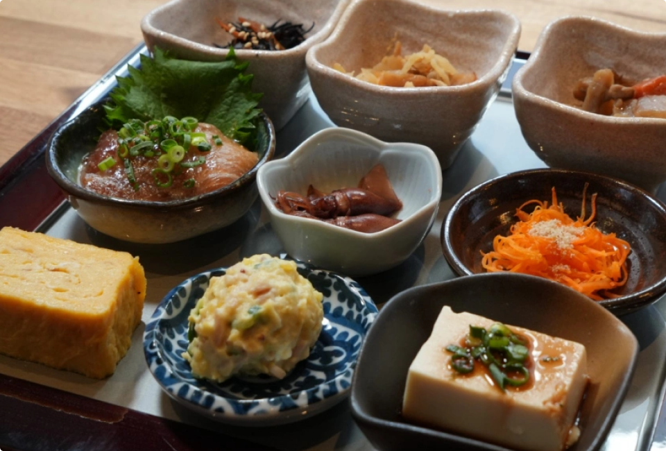 朝食はホテル1階レストラン『鮨和食バル東京橋』にて選べる朝食御膳をご用意いたします。 白米やみそ汁、焼き魚料理、握り寿司やてんぷら盛り合わせなど、多様なメニューをご用意しております。 ビジネスにも観光にも、お出かけ前の朝のひと時をお楽しみくださいませ。