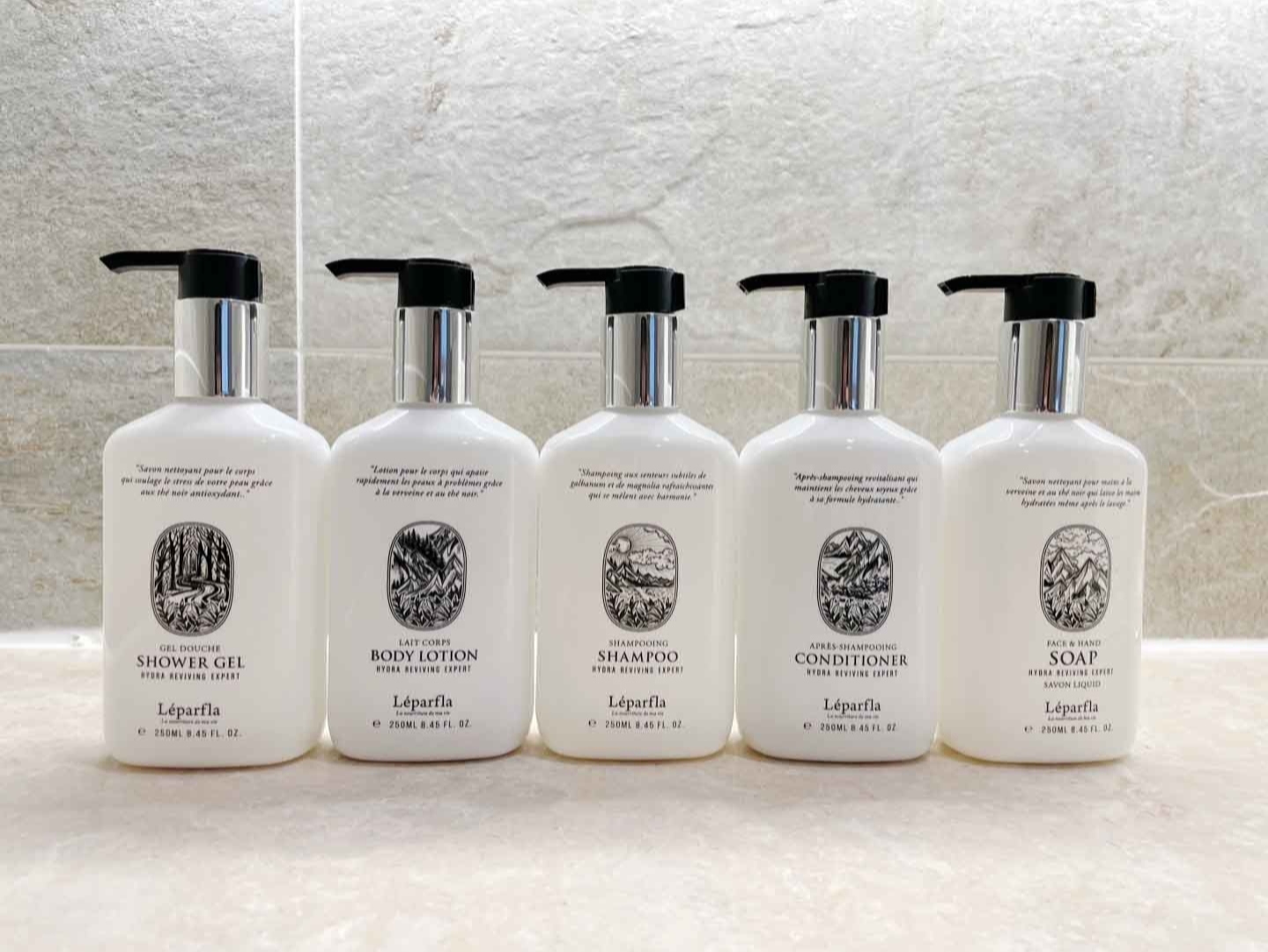 ボディローション、シャワージェル、シャンプー、コンディショナー、石鹸など5種類の製品の中からお好みの品目を予約人数分お選びいただけます。