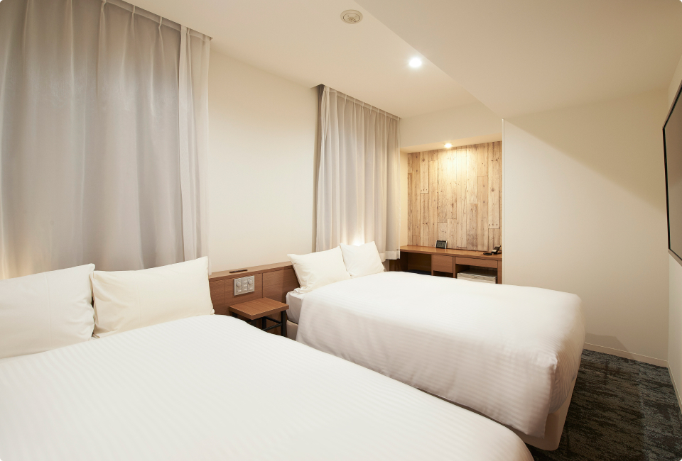 『最上の眠り』をお約束するシモンズ社製ベッドを導入のほか、加湿機能付き空気清浄機完備、"良水工房"の浄水システム設置しています。コンパクトなシングルルームをはじめ、ツインルームなど多様な客室をご用意しています。