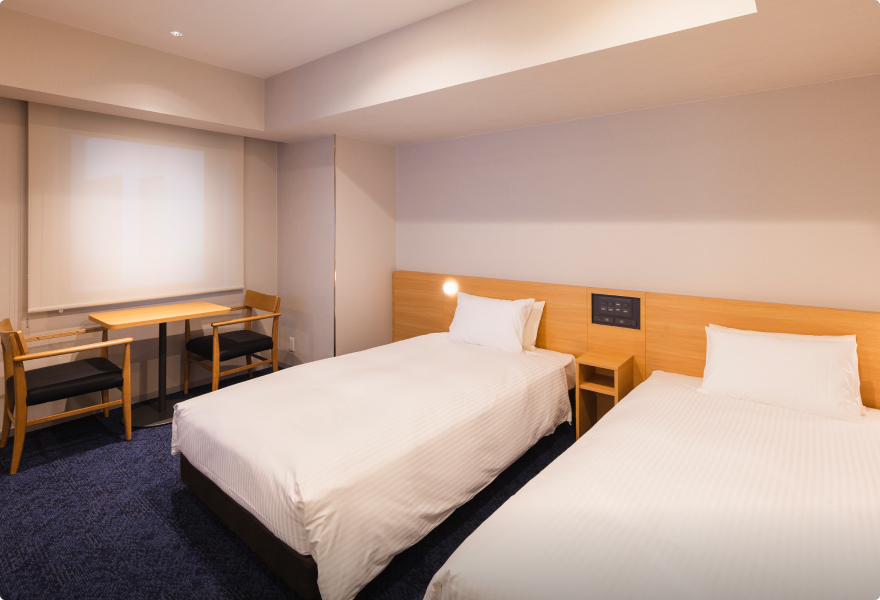 ツインより広めの客室で、ファミリー、お友達同士でのご利用に便利です。ベッド下のスペースは荷物の収納としてご利用いただけます。エキストラベッドご利用で最大3名様までご利用いただけます。エキストラベッドは97cm幅になります。