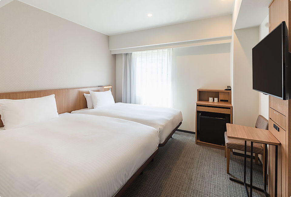 『最上の眠り』をお約束するシモンズ社製ベッドを導入のほか、加湿機能付き空気清浄機完備、"良水工房"の浄水システム設置しています。コンパクトなダブルルームをはじめ、コネクティングルームなど多様な客室をご用意しています。