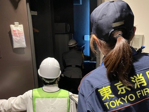 先日、深川消防署の方の立会いのもと、夜間の火災発生を想定した実践的な避難訓練を行いました。