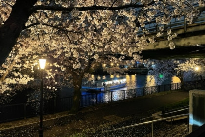 中央に見えるのは屋形船ですね。中では夜桜を見ながらの宴会が催されているようでした。
