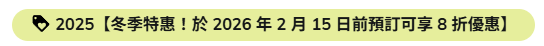 適用住宿期間:2025年12月1日(星期一)至2026年3月15日(星期日)