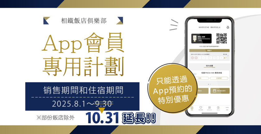 - 【僅限相鐵酒店俱樂部App會員】特別套餐銷售開始公告