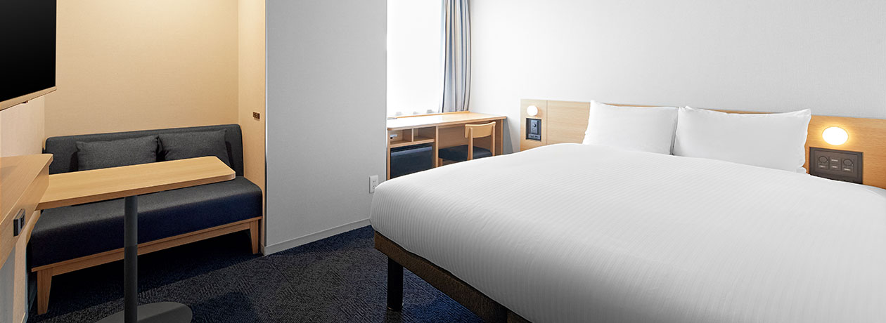 全米トップクラスの実績を誇るサータ社製ベッドを導入のほか、加湿機能付き空気清浄機完備、"良水工房"の浄水システム設置により、優しいお水を提供しています。コンパクトなダブルルームをはじめ、コネクティングルームなど多様な客室をご用意しています。