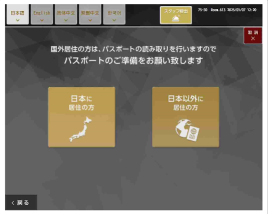 日本にお住まいであれば、「日本に居住の方」を押してください。