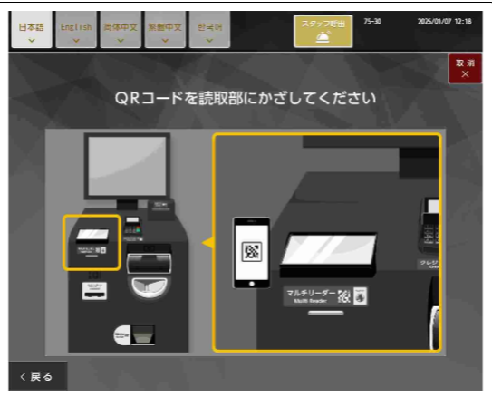 そうでなければ、右のボタンを押し、パスポートをスキャンしてください。